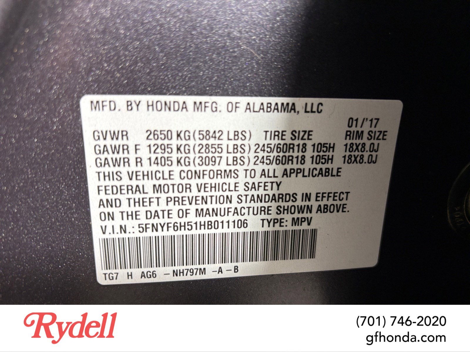 5FNYF6H51HB011106