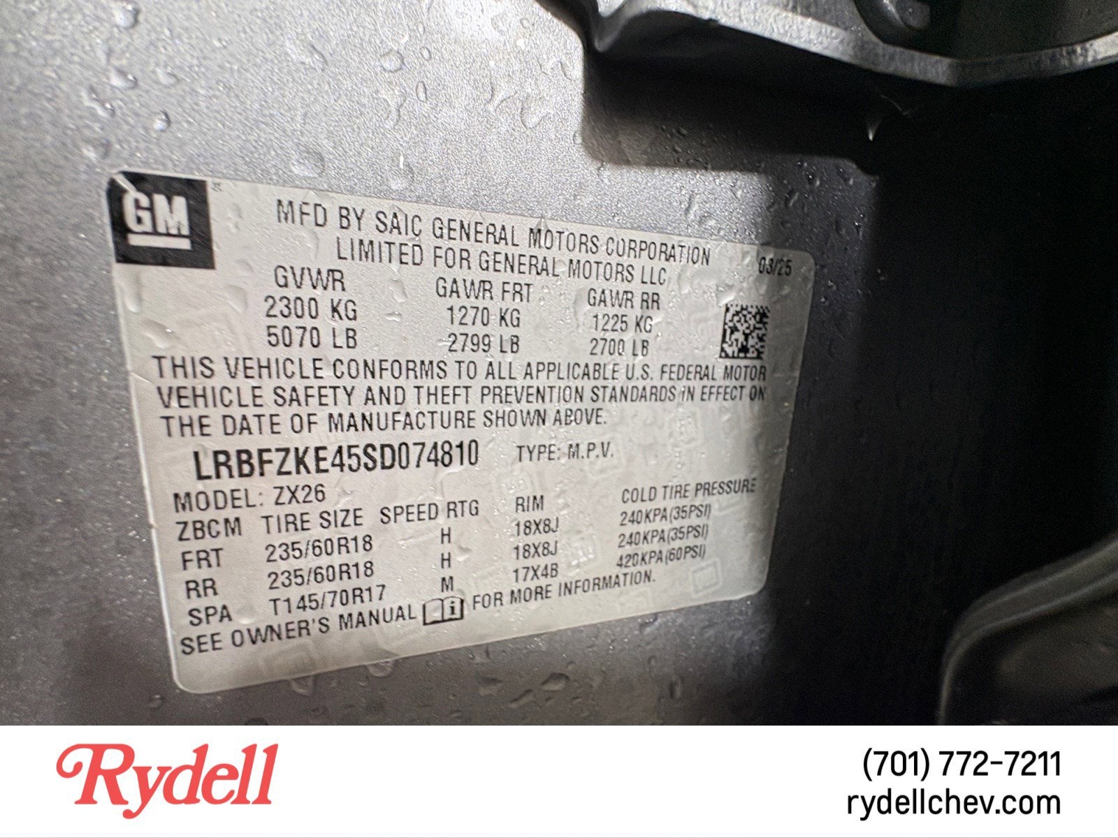 - Tires, P235/60R18 all-season