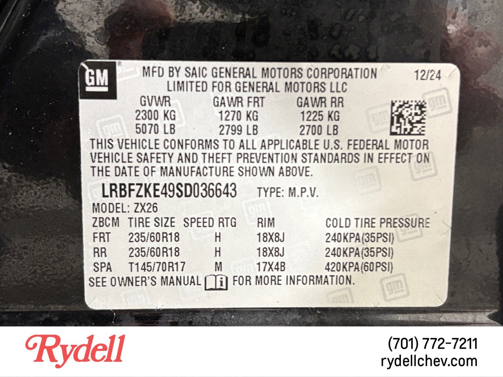 - Tires, P235/60R18 all-season